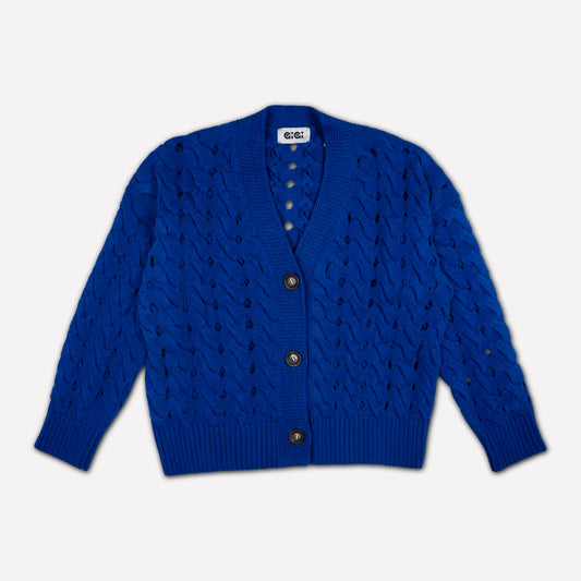 Open Cable Cotton Cardigan in Cobalt Blue