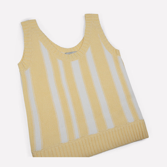 Vertical Stripe Tank Top In Light Yellow and White