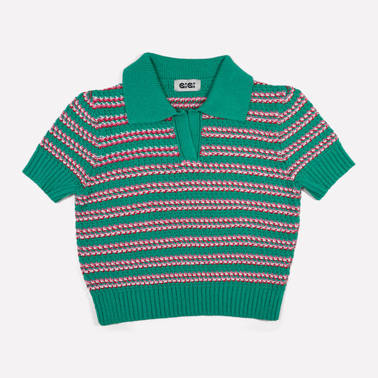 Sold outStripe Polo Top In Green Multi