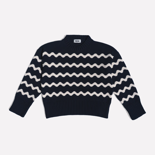 Isla Wavy Stripe Sweater, Navy and Natural