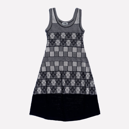 Lila Flower Check Dress, Navy and Ivory