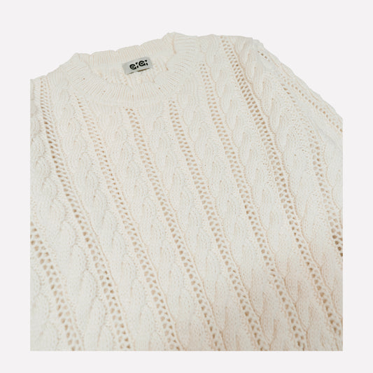 Open Cable Sweater in Ivory