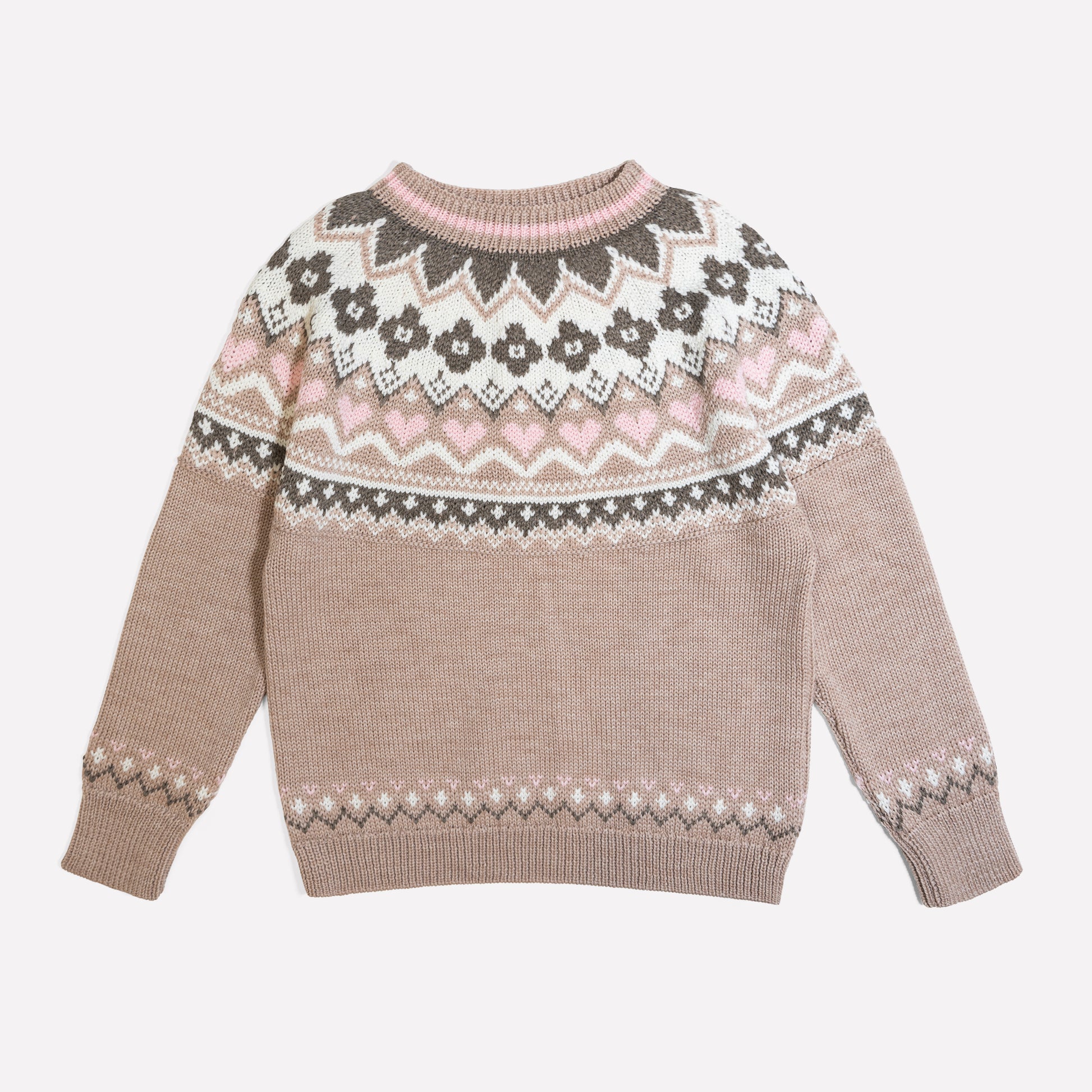Our new Fair Isle sweater is equally classic and nostalgic, with delicate hearts and flowers woven into the traditional motif—those little touches that make it so GiGI. Knit from soft 100% merino wool in a warm beige marl, it’s accented with blush pink, ivory, and cozy neutral tones for a dreamy fall/winter palette. It’s the kind of sweater that goes effortlessly with your favorite jeans, comfy leggings, or layered over a dress for a little extra charm.