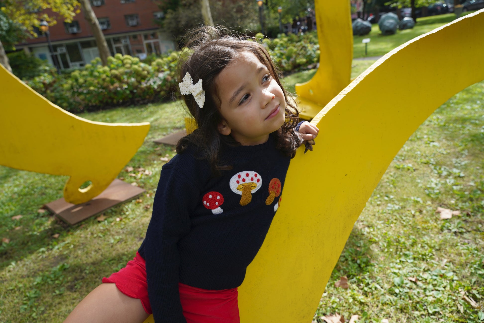 Our mini version of the Mushroom Sweater draws inspiration from the forests of the Bulgarian mountains, where our sweaters are crafted (and where our founder fondly remembers hiking as a child!). Mushroom sightings always seem to capture our fascination and these cuties are hand crocheted, with a flick of lurex running through each, adding a bit of shine, and highlighting the skilled handwork of our artisans. Knit in a navy Merino wool.
