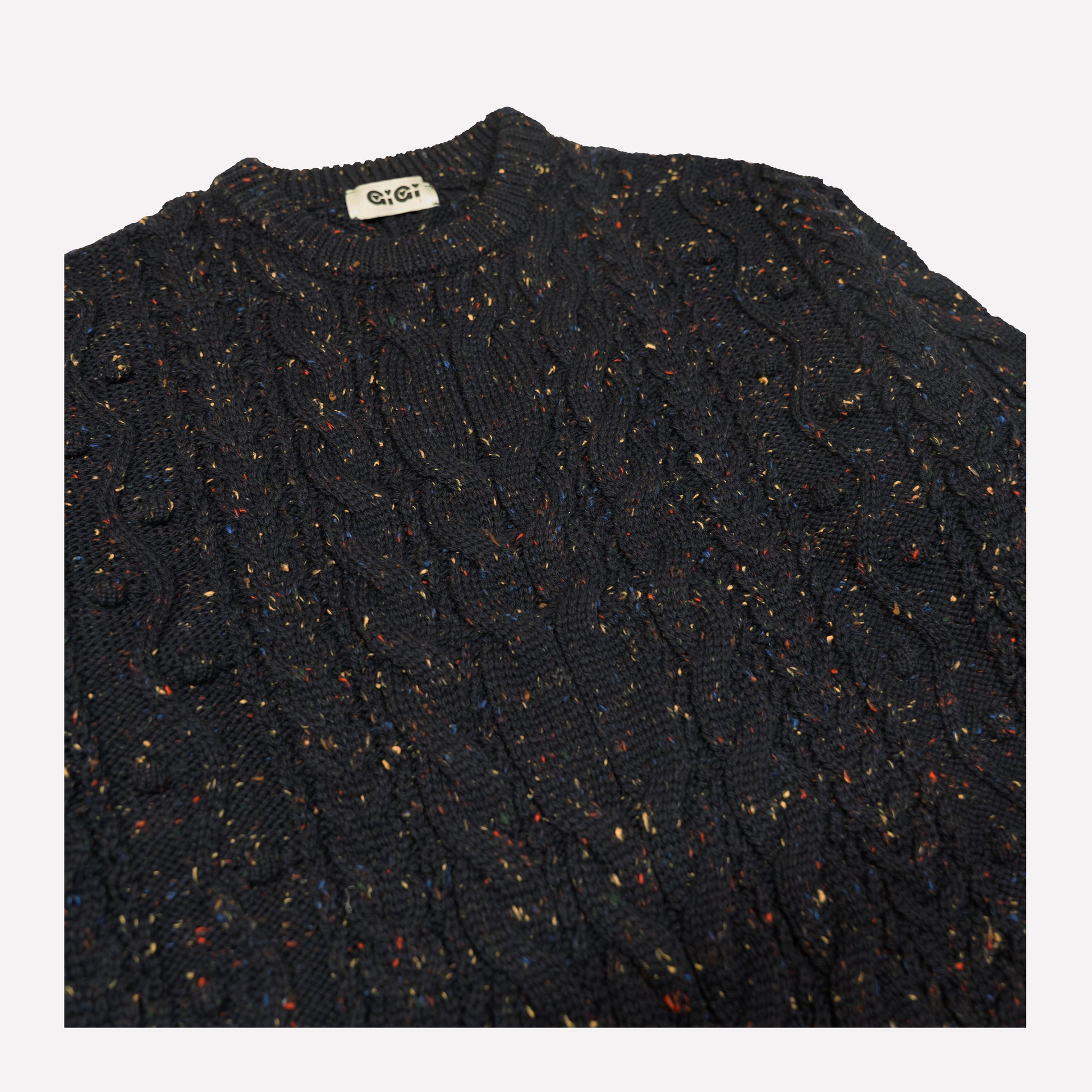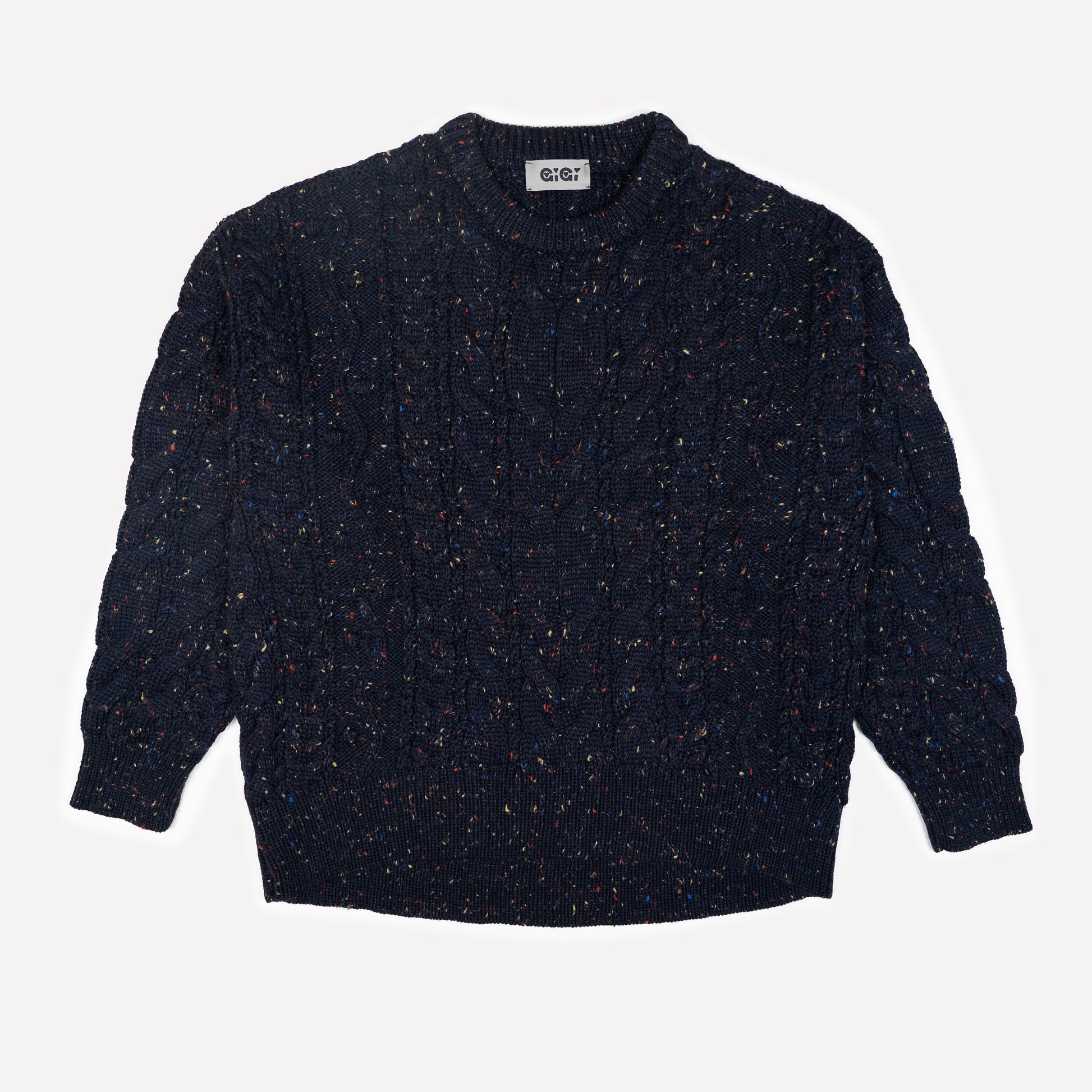 We are always thinking about how we can take the classic fisherman sweater and make it GiGi. Cozy and ever so comforting, our newest Oversized Cable Sweater does just that, featuring a soft merino yarn that is breathable, lending itself to slouchy easy shapes like this one. Outsized cables of a variety of shapes, sizes and textures are knit together to create curious surface detailing and dimension. Perfect for fall and winter layering - wear this generous fitting sweater casually or with wide-leg trousers to bundle up on chilly days. Adding a touch of sweetness, the natural hue is peppered with multicolored speckles throughout.