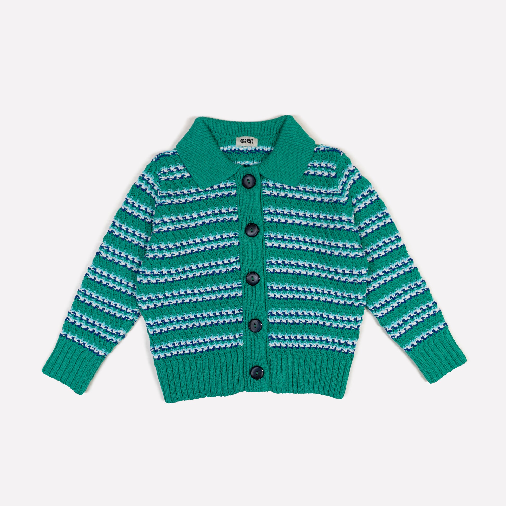 Add a splash of fun to your little one’s wardrobe with our Kids' Stripe Polo Cardigan in Green Multi. Designed with bright, playful stripes and finished with a soft yellow ribbed collar and hem, this cozy short-sleeve layer is made from 100% organic cotton—perfect for keeping cool and comfy all day long.